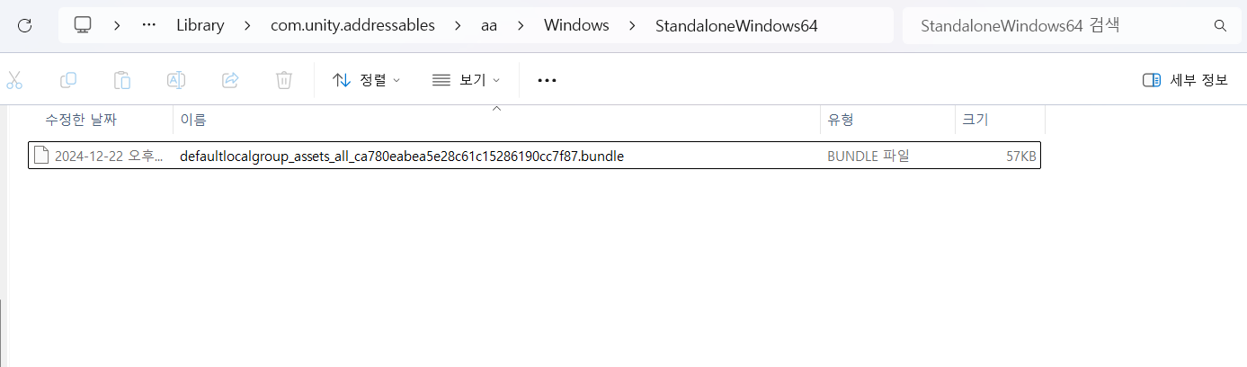위와 같은 형태로 Asset bundle이 생성되는 것을 볼 수 있다.