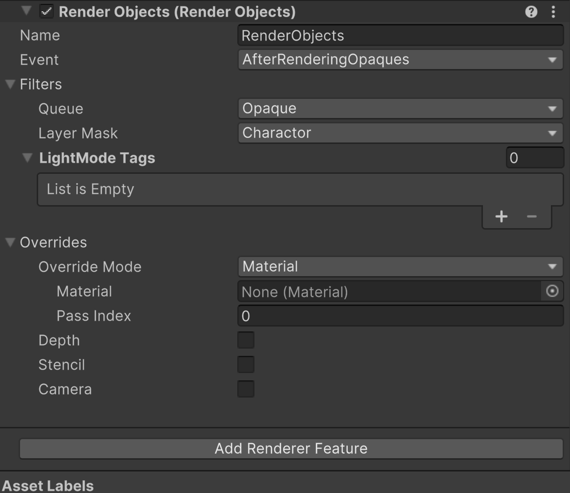 - Overrides : 추가 Rendering 선택, Shader or Material