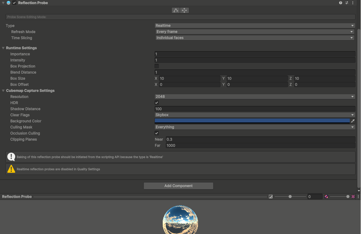 - RealTime : 실시간 Light 변화 감지 후 ReflectionProbe 이미지 맵 생성