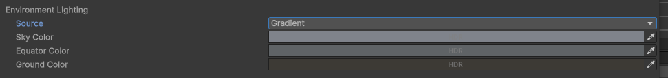 현재 Scene의 주변광에 영향을 미치는 설정을 포함합니다. Skybox, Color, Gradient