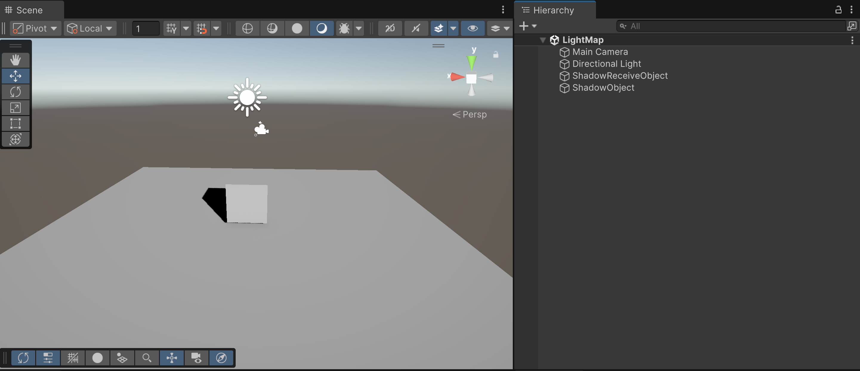 여기서는 Cube로 라이팅정보를 받아, Plane(ShadowReceive)에 그림자를 생성하는 방식에서 Light map을 적용해보도록 하겠습니다.